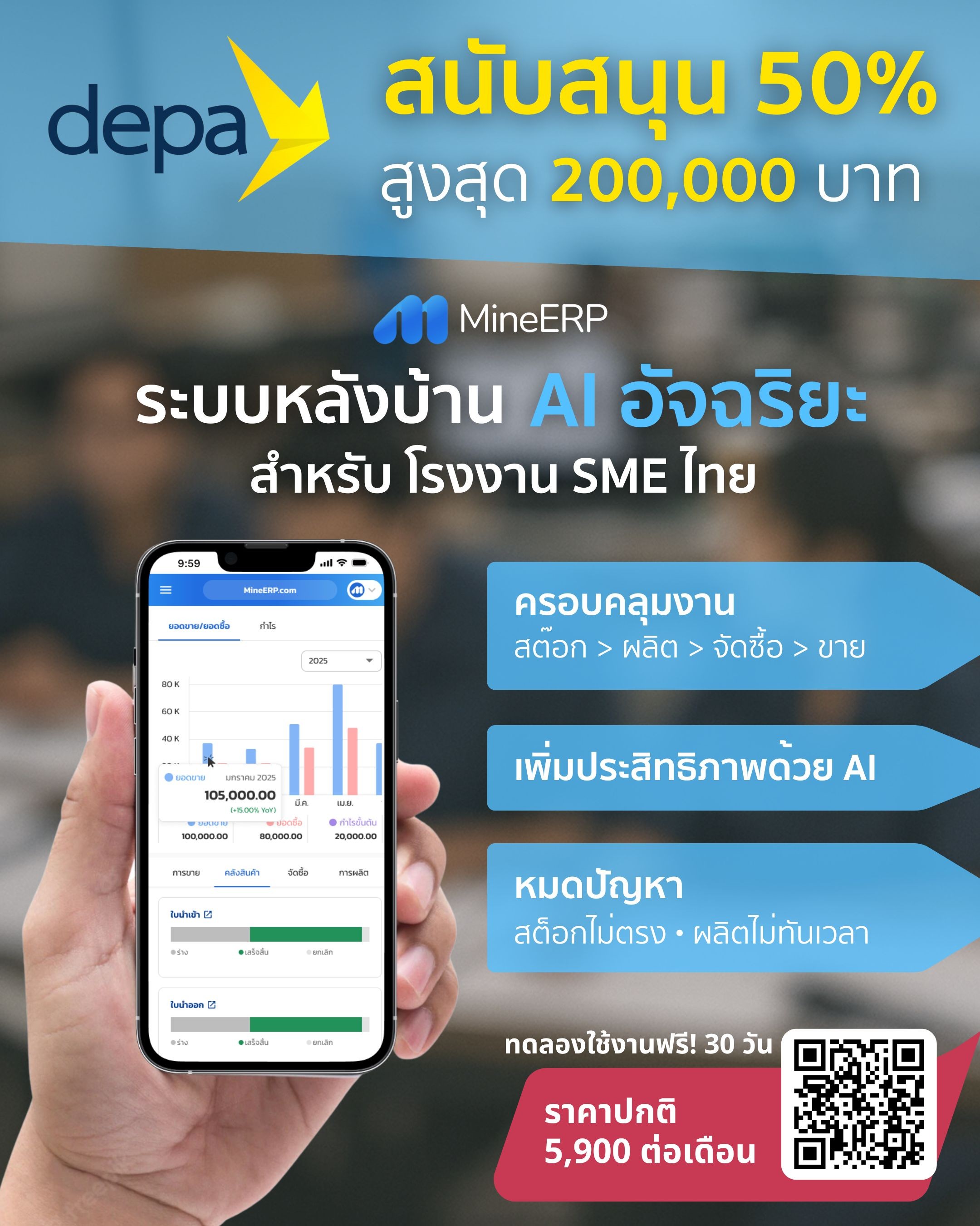 DEPA อุดหนุน 50% สูงสุด 200,000 บาท ให้ธุรกิจ SME ใช้ MineERP – ระบบหลังบ้าน AI อัจฉริยะ ที่ช่วยควบคุมทุกงานหลังบ้านแบบอัตโนมัติ